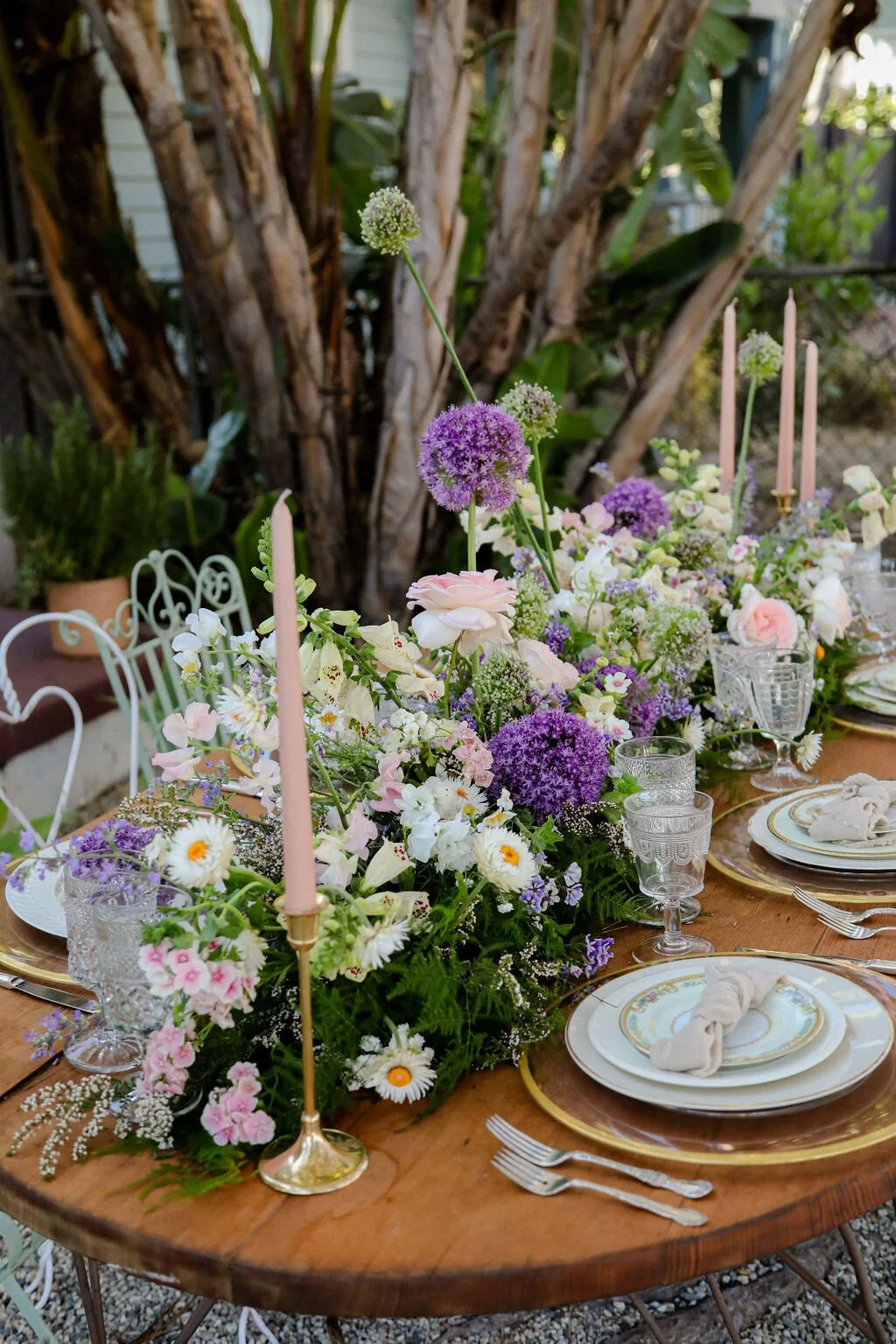 This styled shoot was a delightful fusion of vintage tea party vibes with a modern twist of funk. The design concept embraced a charming and eclectic atmosphere that celebrated the best of both worlds. The color palette focused on lovely purples and soft pinks, adding a touch of whimsy and romance to the overall aesthetic. The result was a visually captivating experience that effortlessly blended timeless elegance with contemporary flair.
